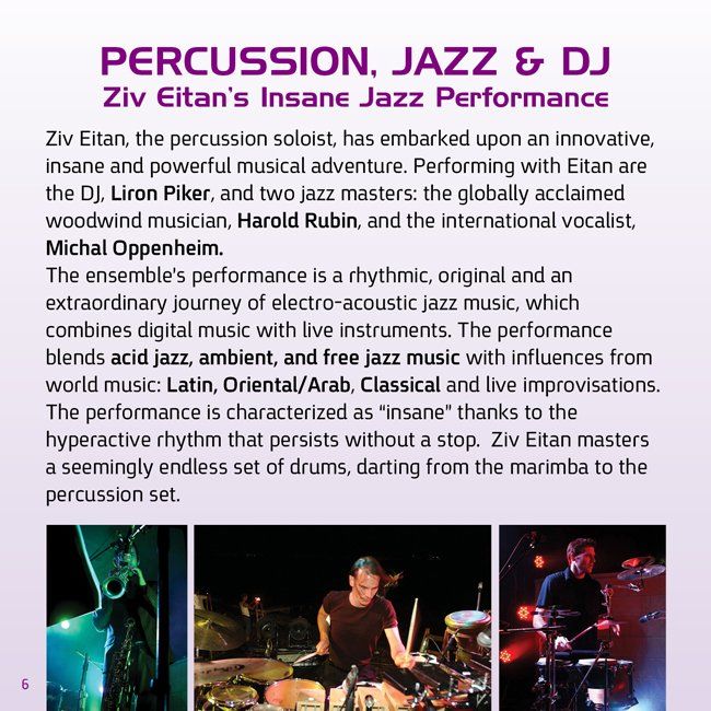 "...ביצוע מבריק של "רחוב 42 ", יצירה אמריקנית, אגרסיבית ומינימליסטית, חשתי קרבה רבה להלם של "רחוב 42" מפני שהאמנתי לנגנים, שבשפת הגוף שלהם שדרו הזדהות מוחלטת עם היצירה האמריקנית, ואז הגיע המופע לשיאו: צמד המקישנים (זיו וגיורי) התגייס בצורה טוטאלית ליצירה של המלחין היפני מינורו מיקי, כל כלי ההקשה, מזרחיים ומערביים, עם