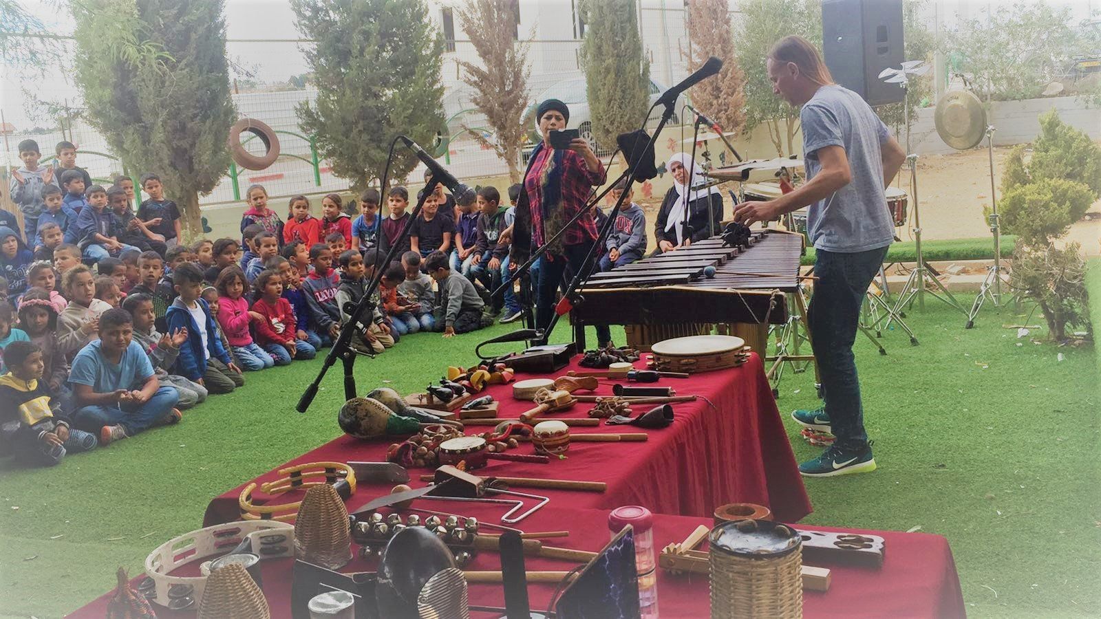 הילדים משתתפים במשחקי קצב, מתנסים בנגינה בכלים השונים וחווים את העולם הקסום של כלי ההקשה.